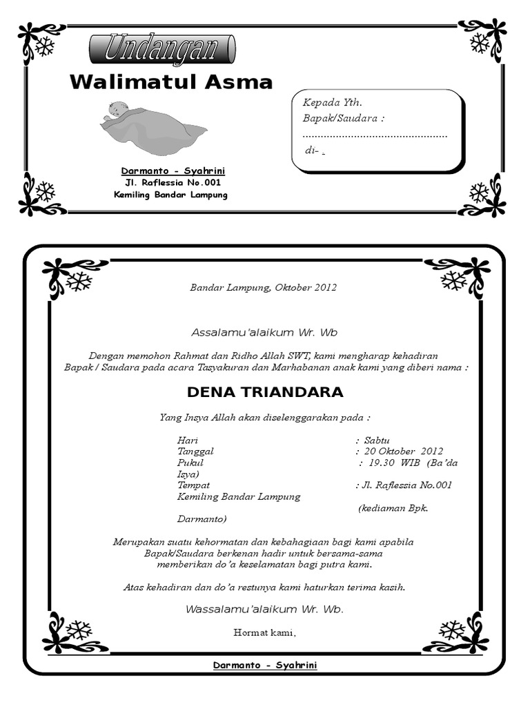 Download Now Download Format Undangan Walimatul Tasmiyah Ruanganbaca ComContoh Surat Undangan Pemberian Nama Anak HD Terbaik